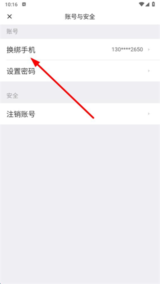 4、在賬號與安全頁面,點擊換綁手機選項,按照提示完成手機號換綁操作。