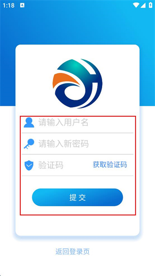 4、在密碼重置頁面輸入用戶名、新密碼,獲取并輸入驗證碼,點擊提交,完成密碼重置操作。