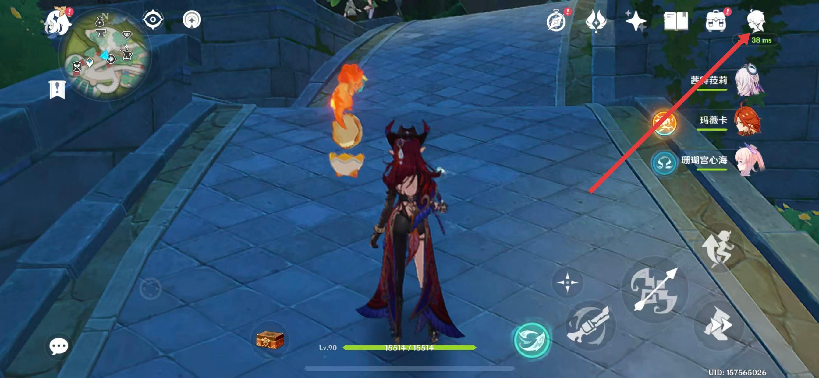 1、進入原神游戲,點擊界面右上方的角色頭像圖標,打開角色選擇界面。
