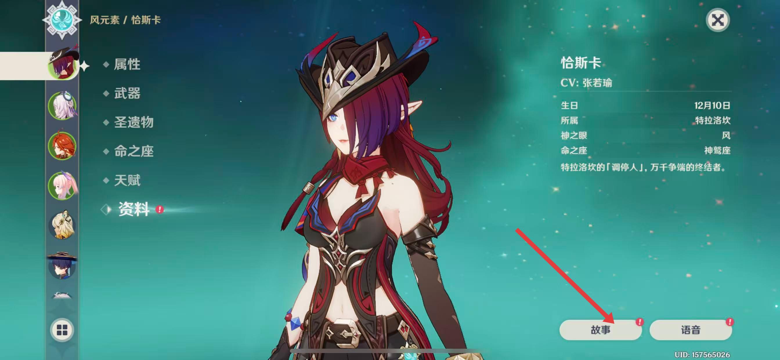 3、在角色資料界面右下方,點擊故事按鈕。