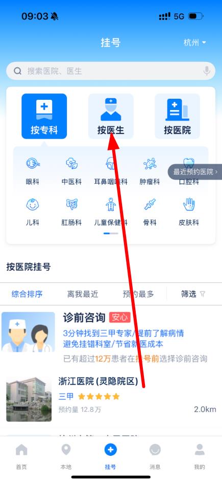 2、在掛號(hào)界面,選擇按醫(yī)生掛號(hào)方式。