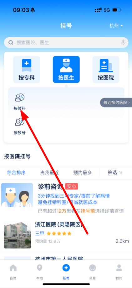 3、點(diǎn)擊按候補(bǔ)選項(xiàng)進(jìn)入按候補(bǔ)找醫(yī)生界面。