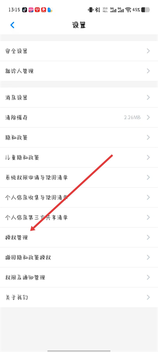 3、點(diǎn)擊授權(quán)管理選項(xiàng),找到撤回隱私政策授權(quán)選項(xiàng)并點(diǎn)擊。