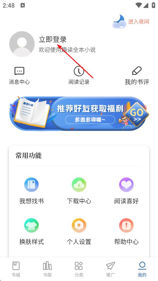 3、在個人中心頁面,點(diǎn)擊上方的“立即登錄”按鈕,進(jìn)入登錄界面。