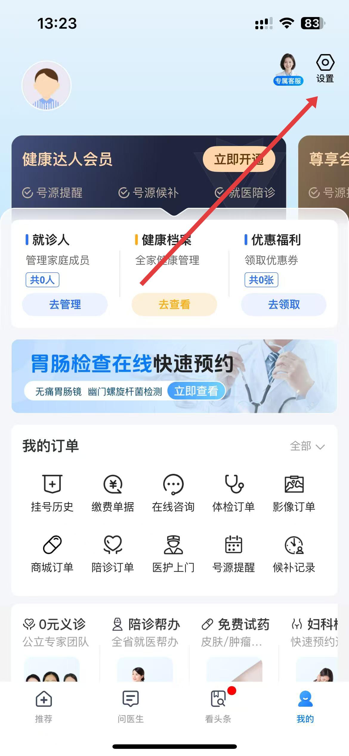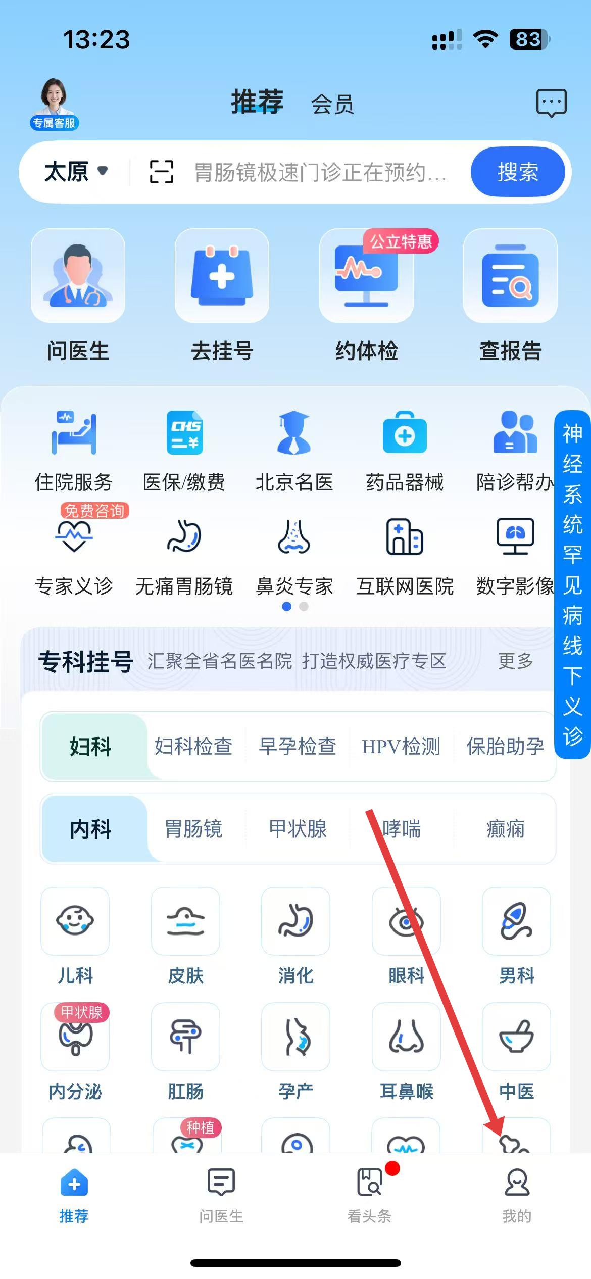 1、打開健康山西app,點擊底部導(dǎo)航欄最右側(cè)我的,進入個人相關(guān)界面。