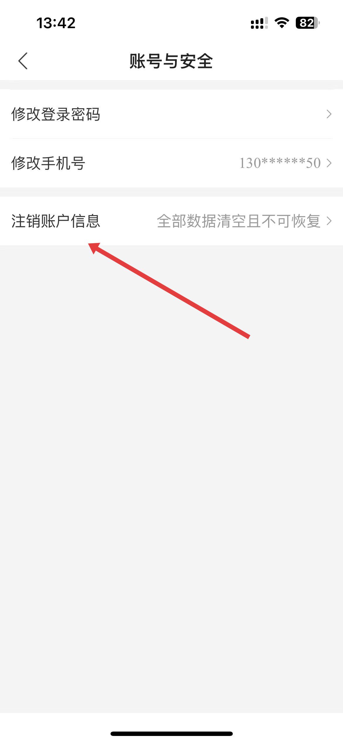 4、在賬號與安全頁面中,點擊注銷賬戶信息選項,進入注銷賬戶頁面。
