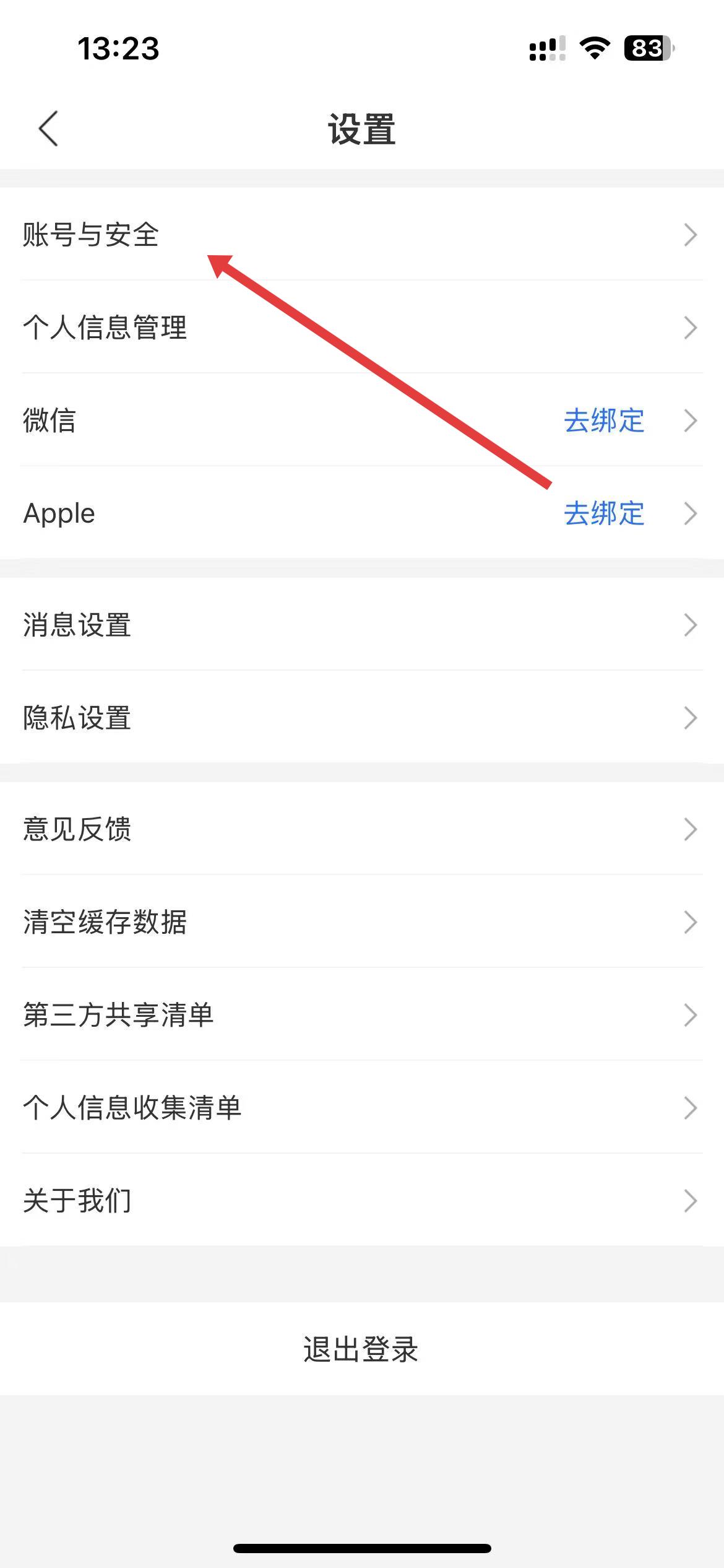 3、在設(shè)置頁面里,點擊賬號與安全選項,進入賬號安全相關(guān)設(shè)置頁面。