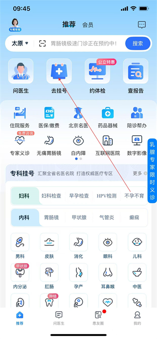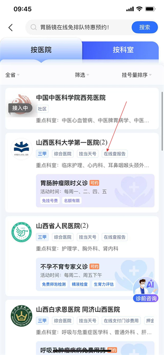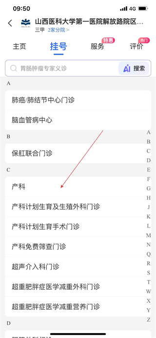 3、進入醫(yī)院頁面后,選擇對應(yīng)的科室。