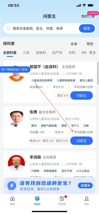 2、在問醫(yī)生頁面,選擇想要咨詢的醫(yī)生,點擊醫(yī)生卡片進入醫(yī)生主頁。