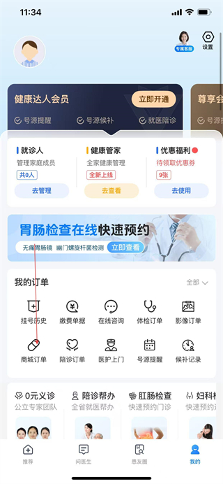 1、在健康山西App首頁點擊底部的我的選項,進入個人中心頁面。