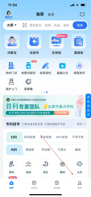1、打開健康山西APP,點擊底部問醫(yī)生,進入問醫(yī)生頁面。
