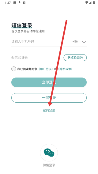 2、在進入到登錄頁面后,可以點擊下方的密碼登錄按鈕,切換登錄方式。