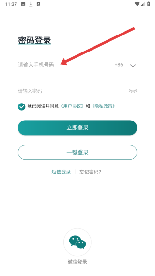 4、在勾選完按鈕后,點擊輸入框依次輸入手機號碼與密碼后完成登錄。