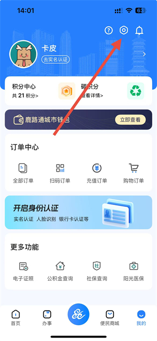1、打開鹿路通APP,在我的頁面點擊右上角設(shè)置圖標。