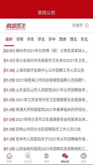 麟越醫(yī)生帶你實時了解各種醫(yī)院招聘信息,豐富的功能不僅實時更新各大醫(yī)院的招聘發(fā)布還有便捷的操作方式等你來體驗,各種不同專業(yè)人才查詢還有詳細的招聘信息以及個人簡歷制作等等,上手容易帶來極大的方便十分值得一試。需要的朋友趕緊來下載吧!