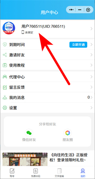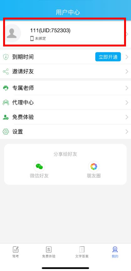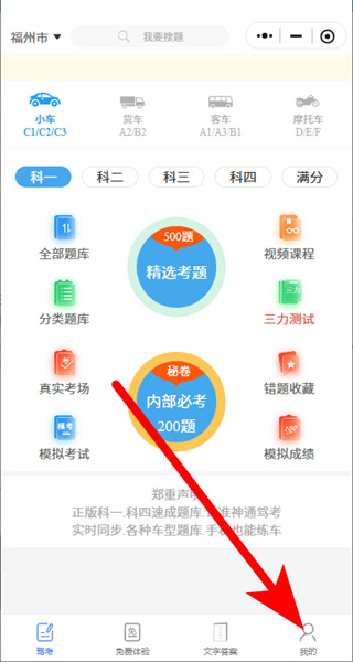1、打開神通駕考APP,點擊底部導航欄的我的選項,進入用戶中心頁面。