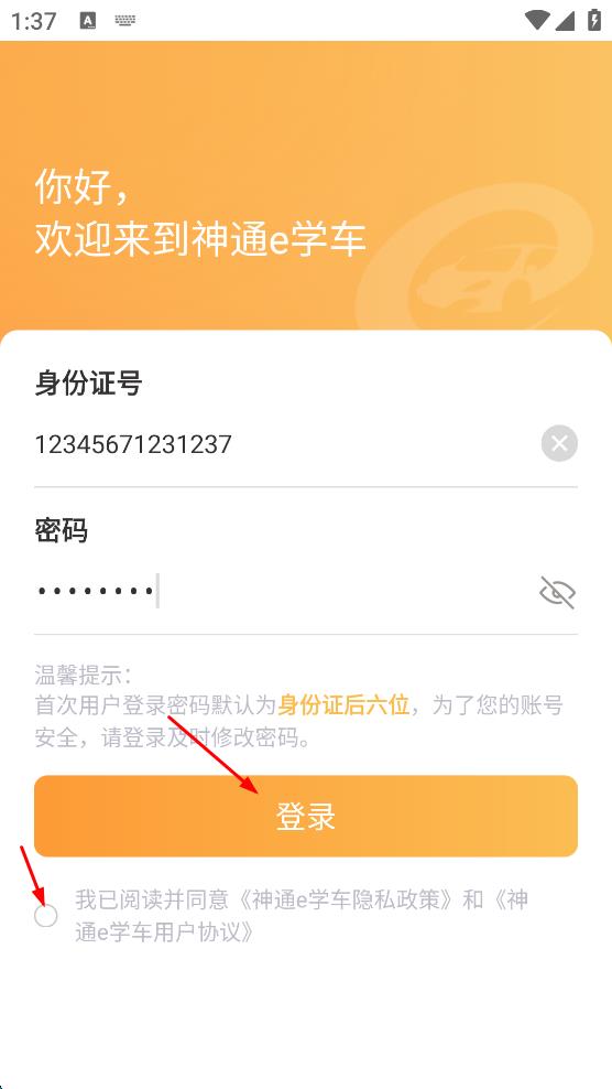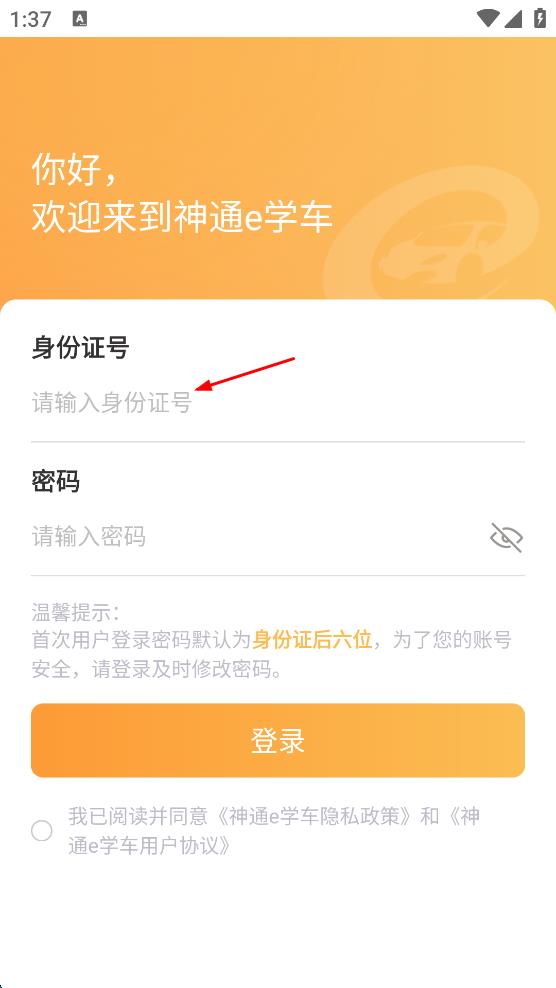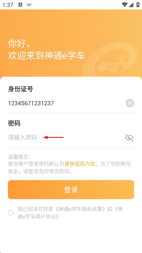 4、勾選我已閱讀并同意神通e學車隱私政策和神通e學車用戶協(xié)議,最后點擊“登錄”,即可完成神通e學車的登錄。