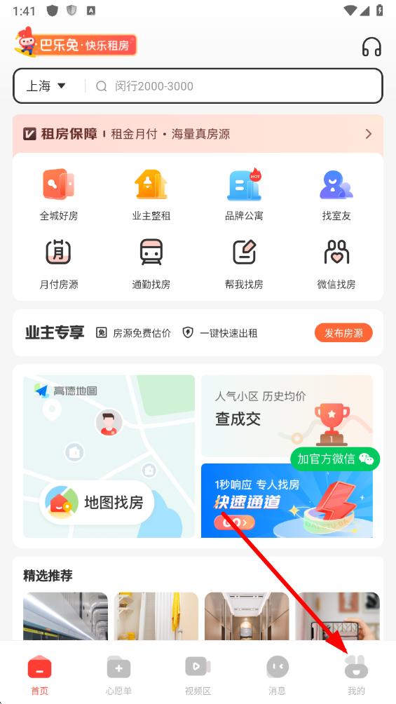 1、打開巴樂兔租房app,點擊底部導航欄中的我的圖標,進入個人相關(guān)界面。