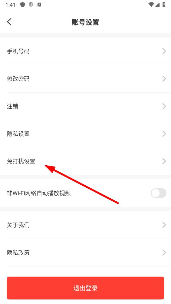 3、在賬號設(shè)置頁面中,找到并點擊免打擾設(shè)置選項。