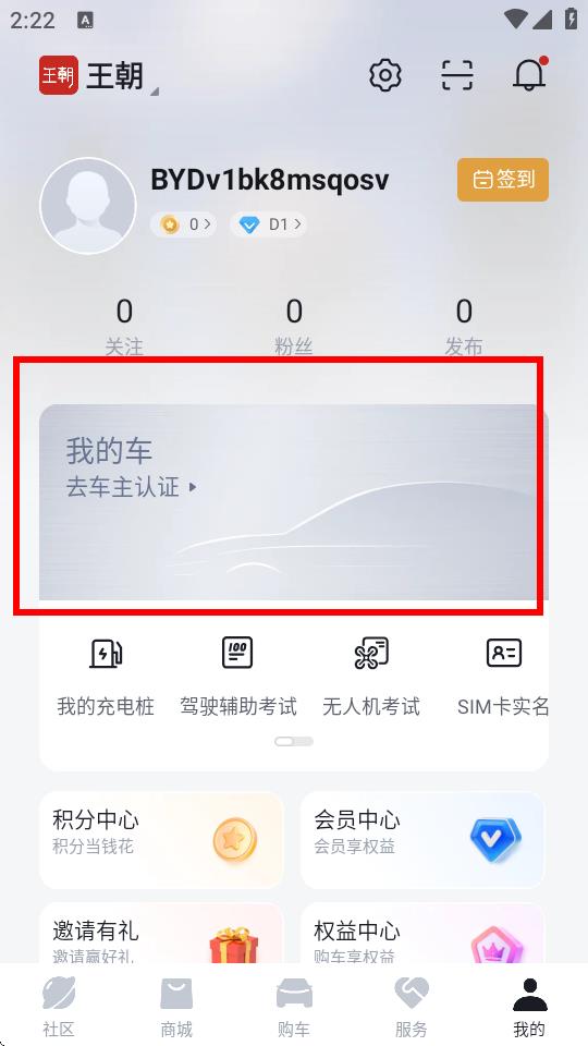 2、在我的頁面中,找到我的車區(qū)域,點擊去車主認(rèn)證。