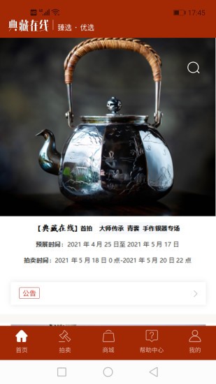 典藏在線這里擁有非常多的收藏品每天都在拍賣中,你可以根據(jù)自己的喜好關(guān)注自己感興趣的拍賣會(huì),線上可以查看各個(gè)產(chǎn)品的詳細(xì)信息,每個(gè)產(chǎn)品都是經(jīng)過鑒定的,保障用戶們交易安全,同時(shí)還能在線搜索感興趣的產(chǎn)品,歡迎有需要的朋友下載使用!
