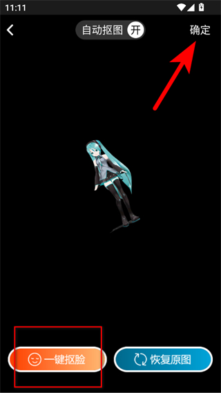 3、圖片添加后,可使用一鍵摳臉等功能進(jìn)行摳圖,完成后點(diǎn)擊右上角確定。