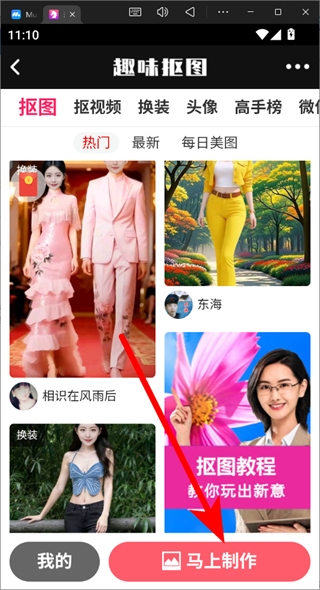 2、在趣味摳圖頁面點(diǎn)擊馬上制作,進(jìn)入趣味摳圖編輯頁面后點(diǎn)擊添加圖片。