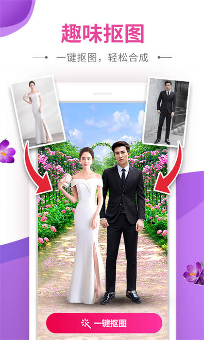 海量模板每天更新,唯美、搞怪、時(shí)尚、風(fēng)景豐富多彩,駕車騎馬、劃船戲水、飛奔云霄,跟神話里的人物互動(dòng)、和喜歡的明星合照、到世界各地留影。搭配一鍵摳圖、摳臉把照片完美融入模板背景和動(dòng)作特效上