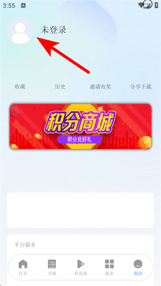 2、在個(gè)人頁面中,點(diǎn)擊未登錄的頭像區(qū)域,進(jìn)入登錄注冊界面。