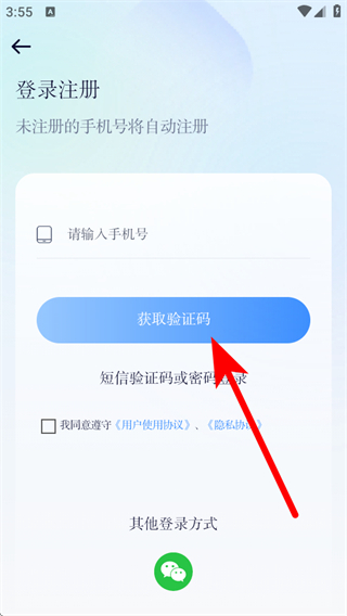 3、在登錄注冊界面,輸入手機(jī)號碼和驗(yàn)證碼,即可完成賬號注冊。