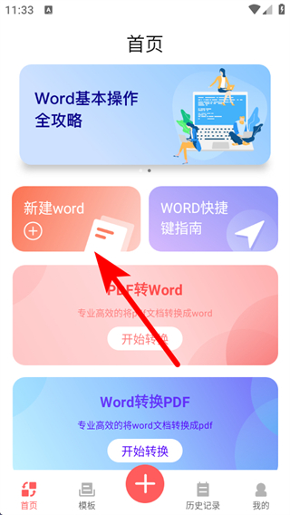 1、打開軟件,在首頁(yè)點(diǎn)擊新建word,進(jìn)入文檔編輯界面。