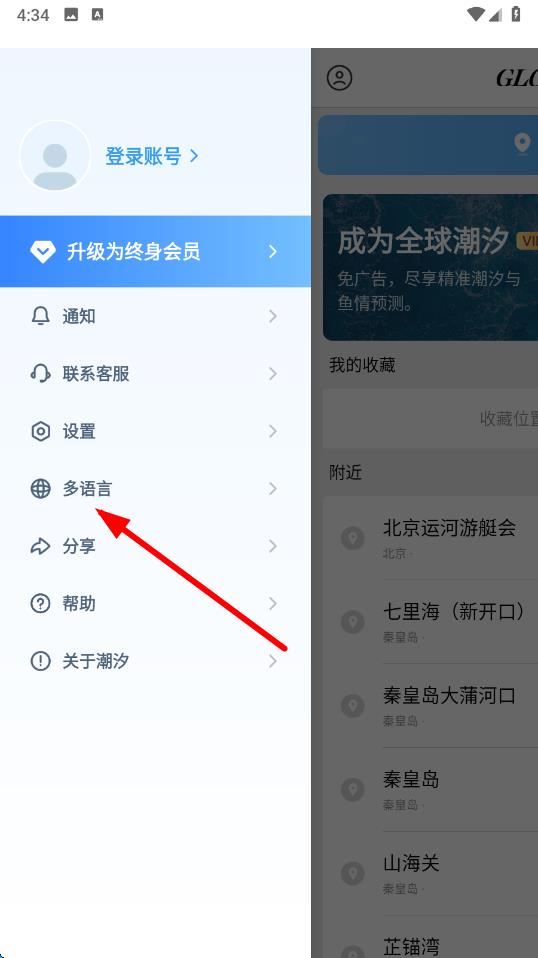 2、在側(cè)邊欄中,找到并點擊多語言選項,進入語言設(shè)置界面。