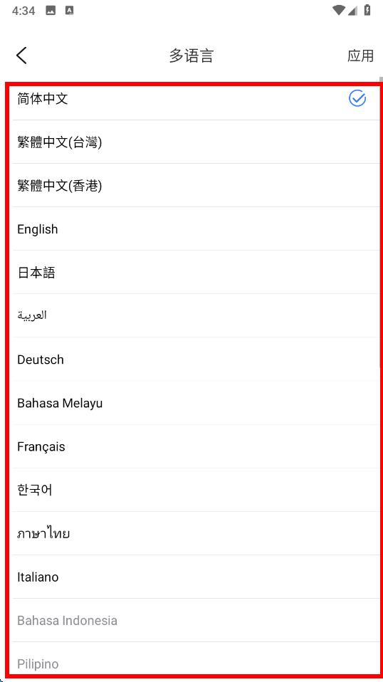 3、在多語言設(shè)置界面,可以看到多種語言選項羅列其中。