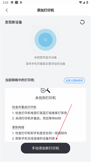 2、進(jìn)入界面之后,找到并點(diǎn)擊手動(dòng)添加新打印機(jī)按鈕,進(jìn)入選擇打印機(jī)型號(hào)的頁面。