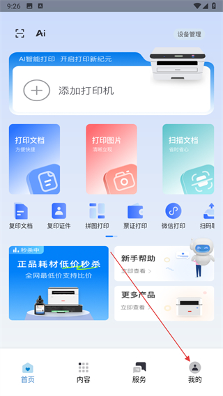 1、打開聯(lián)想至像打印APP,點(diǎn)擊我的選項(xiàng)。