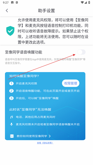 4、點(diǎn)擊至像同學(xué)語音喚醒功能的開關(guān)即可。