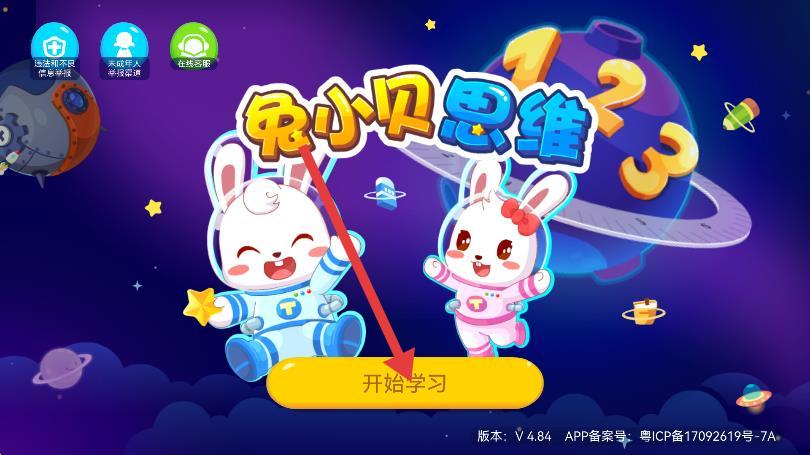1、打開兔小貝思維,點(diǎn)擊主界面中的開始學(xué)習(xí)。
