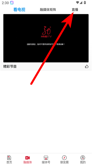 2、在融媒體界面,點(diǎn)擊右上角直播選項(xiàng),進(jìn)入直播列表頁面。