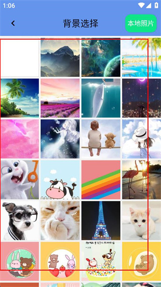 4、在背景選擇界面,可選擇本地照片或軟件提供的背景圖,完成背景更換操作。