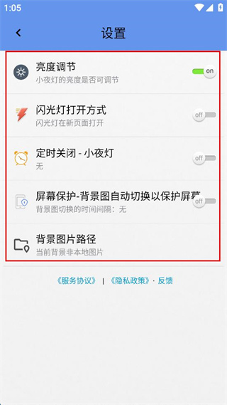 夜燈軟件安卓版可以當(dāng)做照明工具,燈光的顏色和亮度均可以根據(jù)實際情況來進行調(diào)節(jié),支持定時,還可以自定義背景,風(fēng)格多樣,選擇多多,非常適合在夜晚、暗處來使用,使用時十分的方便,喜愛的朋友趕快下載體驗吧。