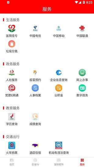 人社服務(wù)、疫苗預(yù)約、企業(yè)信息查詢、網(wǎng)上辦事、黨建E網(wǎng)通、公積金、人事檔案、數(shù)字政務(wù)