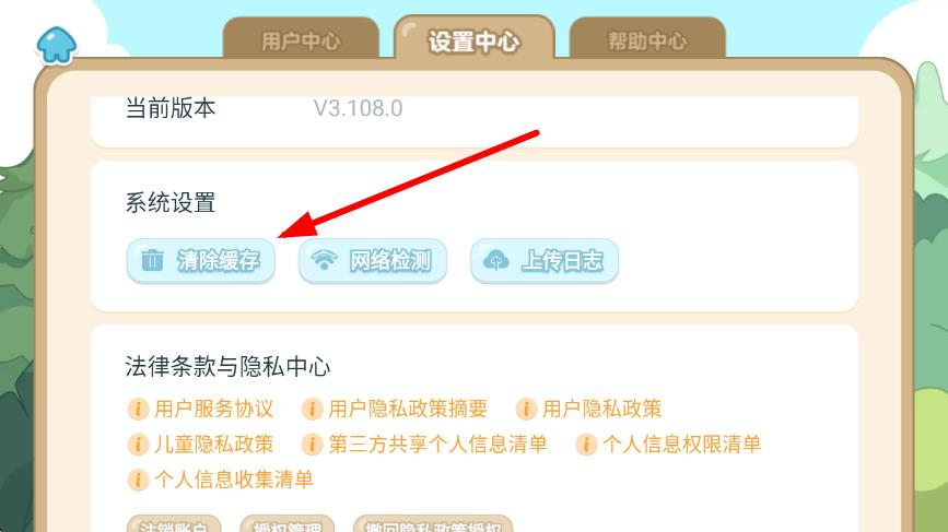 3、進(jìn)入設(shè)置中心,選擇清除緩存選項(xiàng),在彈出的頁面,點(diǎn)擊確定清理按鈕,即可完成清除。