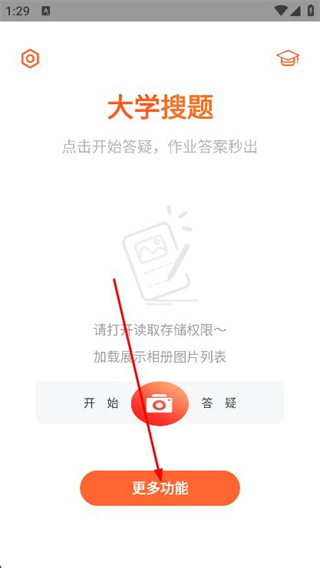 1、打開大學(xué)搜題APP,點(diǎn)擊更多功能選項(xiàng)。