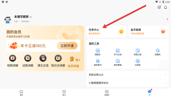 1、在個人中心界面,點擊任務(wù)中心選項,進(jìn)入任務(wù)列表頁面,可查看新手、每日等任務(wù),開啟任務(wù)參與流程,獲取金幣等獎勵。