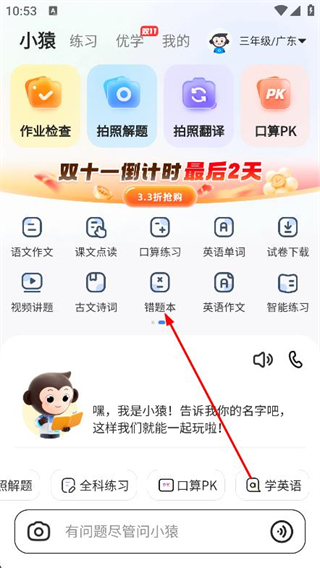 1、打開小猿搜題APP,點擊上方的錯題本選項。