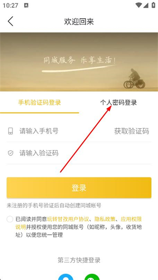 3、進(jìn)入登錄頁面后,找到并點(diǎn)擊個(gè)人密碼登錄選項(xiàng)。