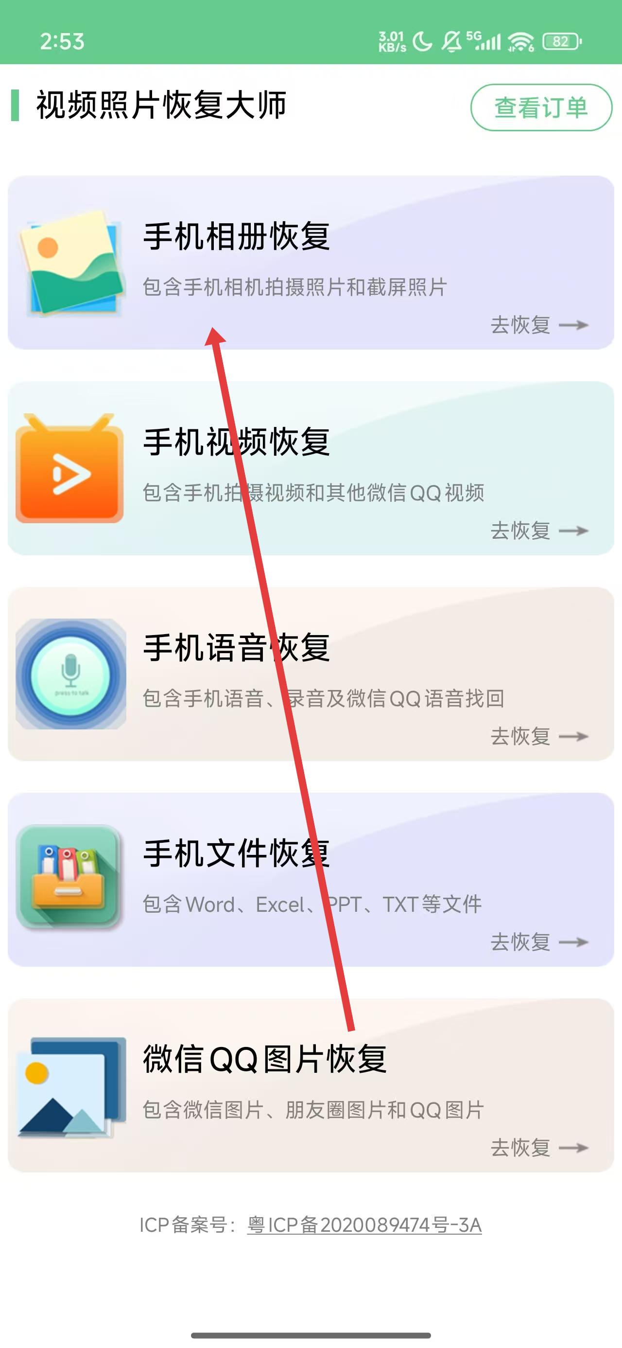 1、在進入到應用中,可以選擇點擊手機相冊恢復功能進行使用。