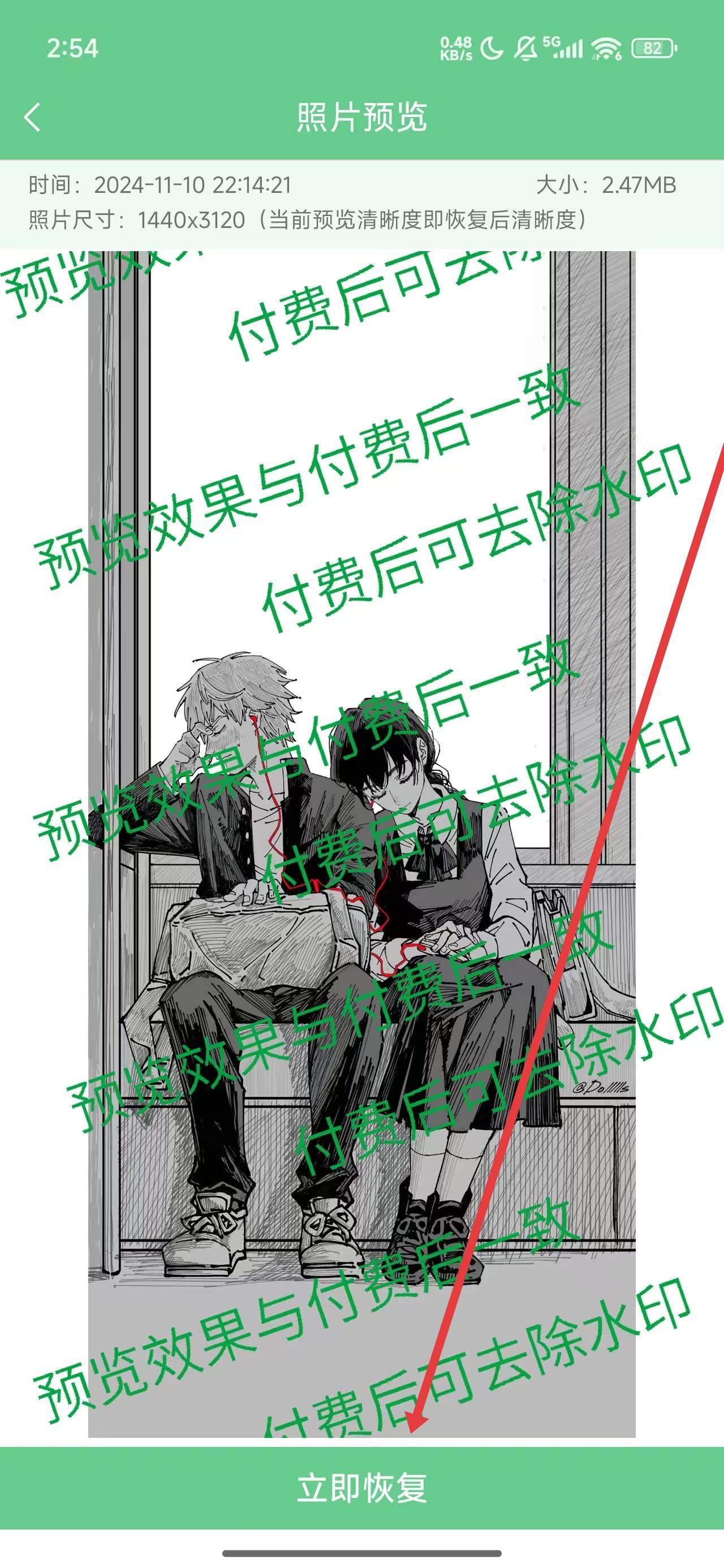 4、在進入到照片預覽頁面中,點擊下方立即恢復按鈕,即可恢復該圖片。