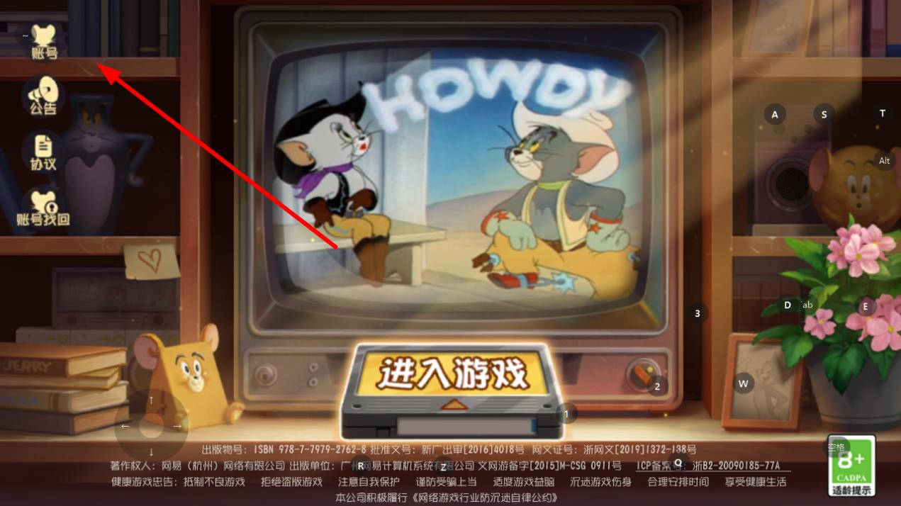 1、打開貓和老鼠游戲,在游戲初始界面,點擊左上角的賬號按鈕,進入賬號登錄相關(guān)界面。