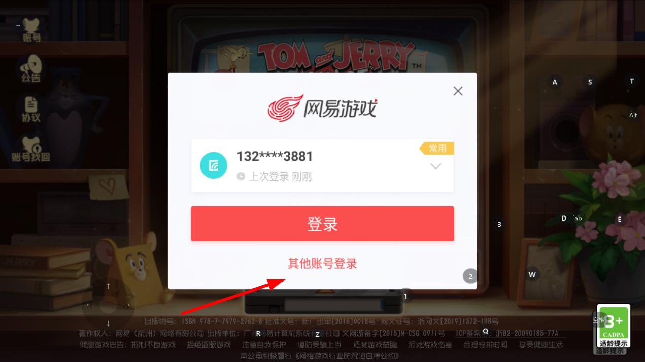 2、在彈出的登錄界面中,點擊其他賬號登錄選項,準備進行賬號切換操作。